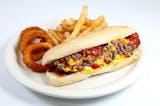 Caramelized onions, mushrooms, jalapenos, nacho cheese, with steak or chicken.